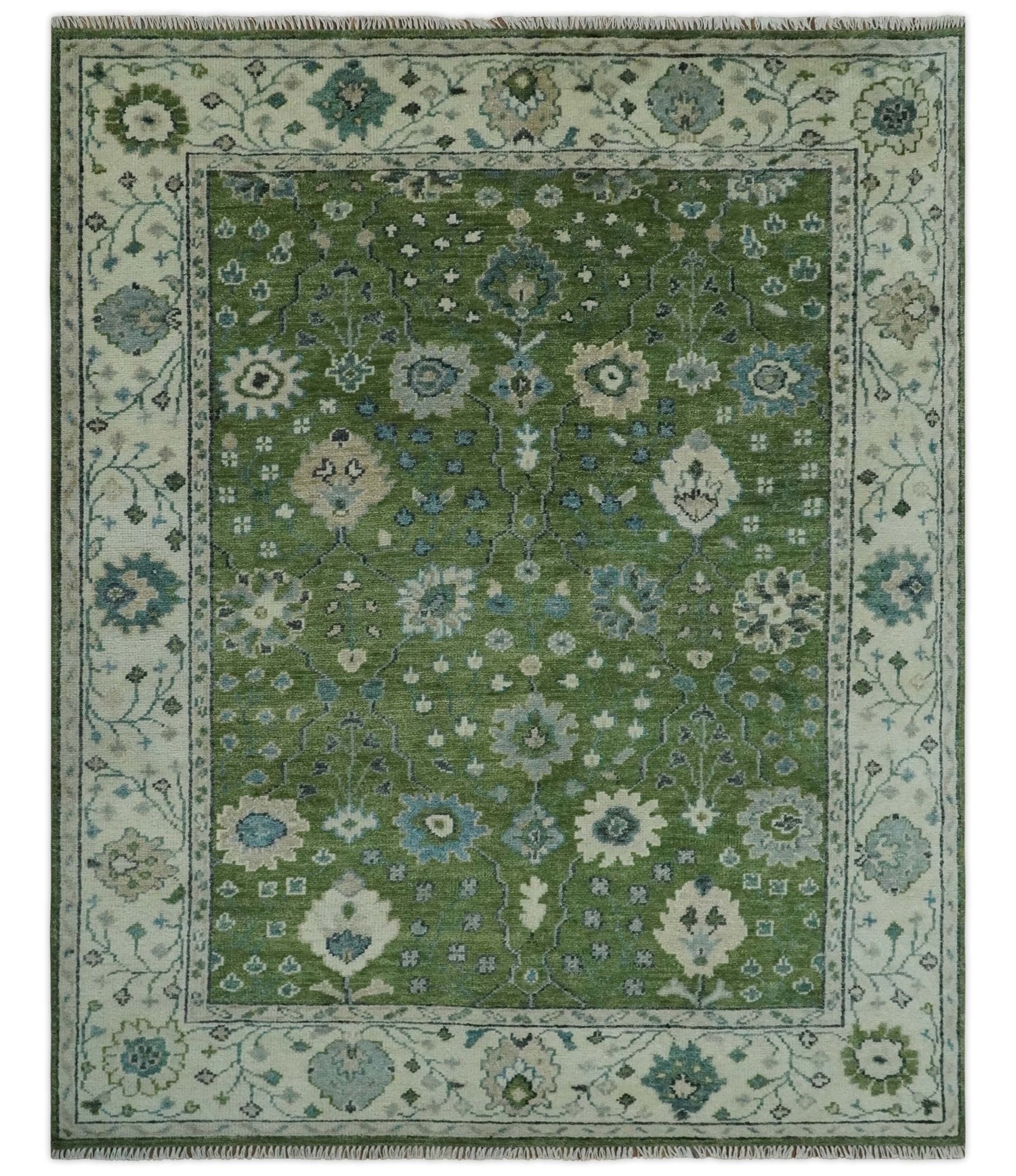 Royal Green and Ivory Custom Made Hand knotted Traditional Oushak wool Area Rug