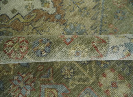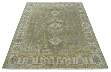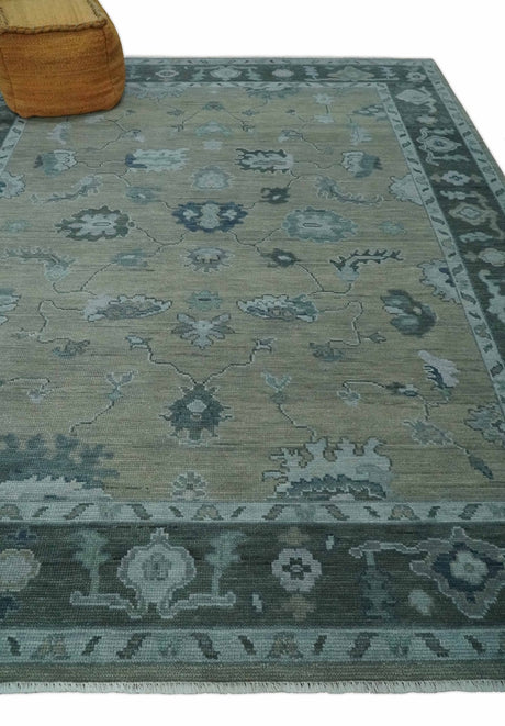 Antique style Floral Gray, Beige and Green Hand knotted Oriental Oushak Multi Size Wool Area Rug