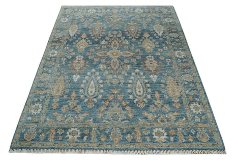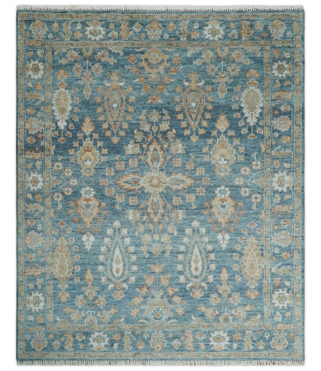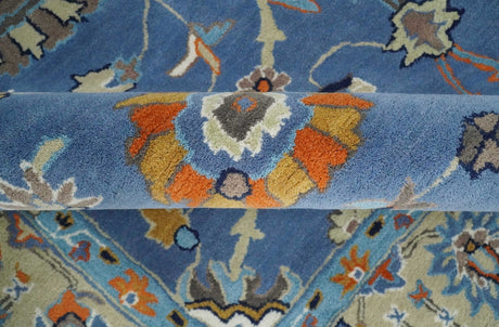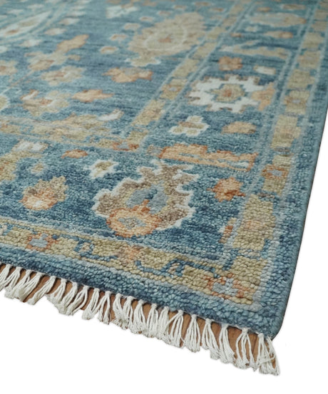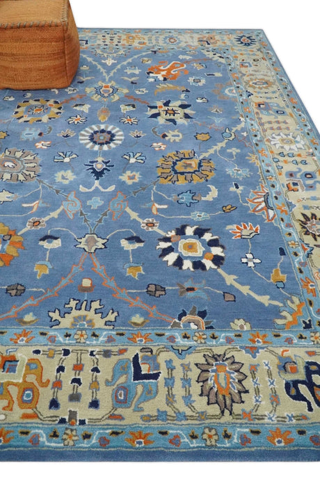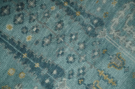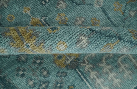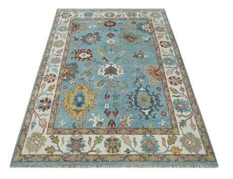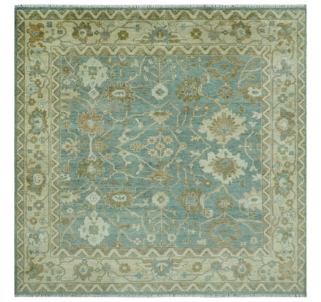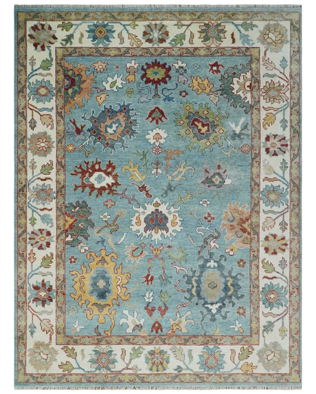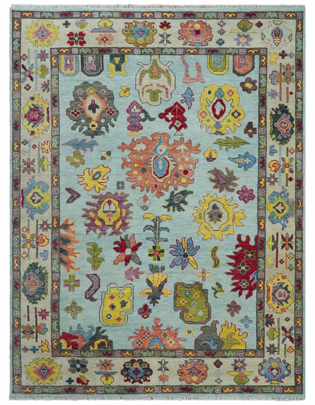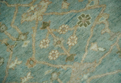 Custom Made Aqua and Ivory hand knotted Vibrant colorful Traditional Oushak Wool Area Rug