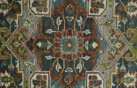 Hand Knotted Charcoal, Camel and Teal Traditional Heriz Serapi Multi size Wool Area Rug