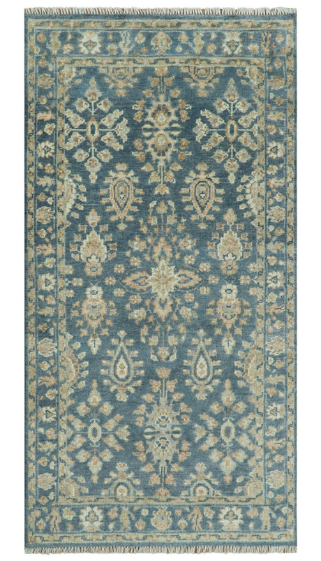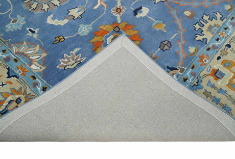 Custom Made Antique Hand Knotted Blue and Beige Traditional Oushak Wool Area Rug