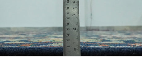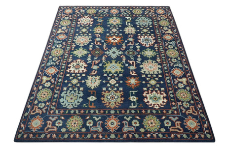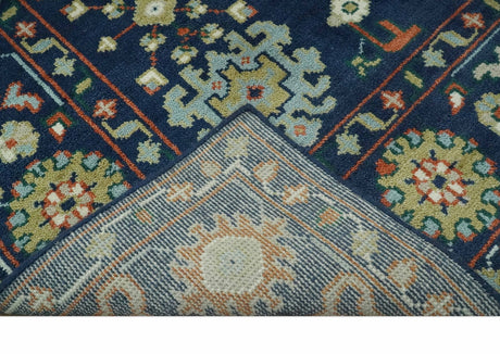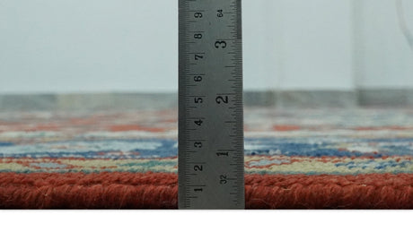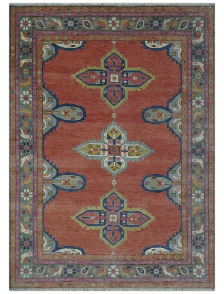 Custom Made Tribal Motifs Hand Knotted Rust, Gold and Blue Oriental Traditional Wool Area Rug