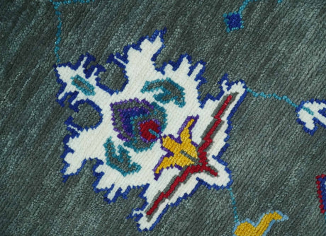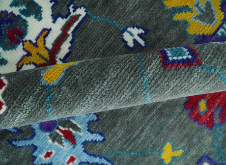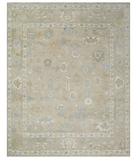 Custom Made Ivory and Gray Vibrant Colorful Hand knotted Traditional Oushak wool Area Rug