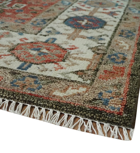 Custom made Traditional Vintage Style Green, Rust and Ivory Turkish design wool Area Rug