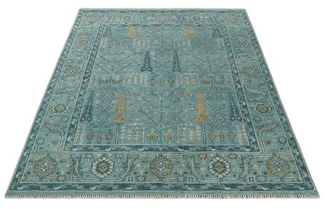 Hand Knotted Teal and Beige Multi Size Traditional Turkish Tree of Life Wool Rug