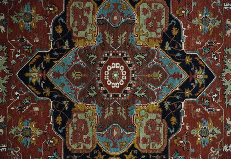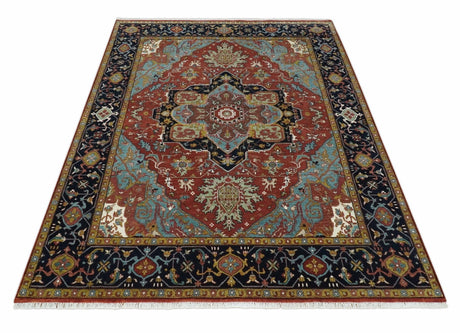Hand Knotted Rust, Blue and Black Traditional Vintage Style Heriz Serapi Custom Made Wool Area Rug