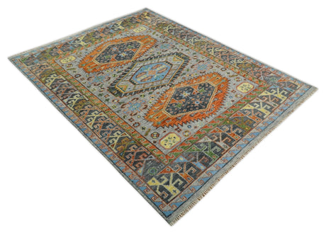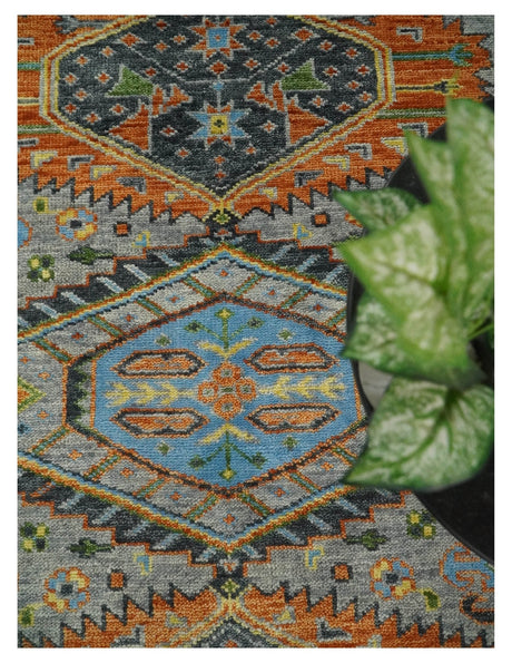 Silver and Rust Oriental Hand Knotted Traditional Living Room Custom made wool Area Rug