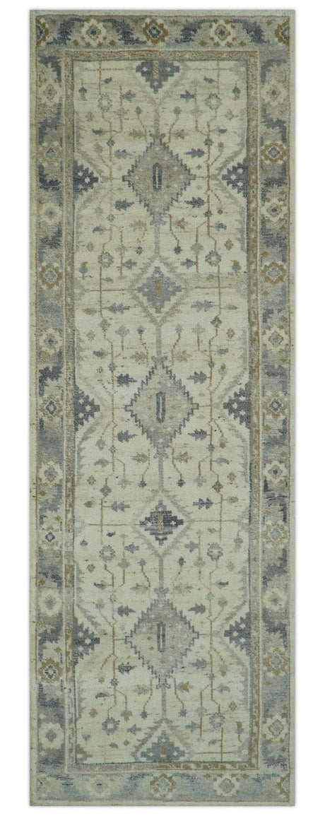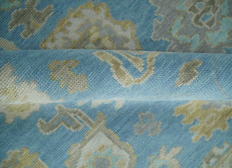 Custom Made Hand Knotted Gray, Blue and Beige Traditional Oushak Wool Area Rug