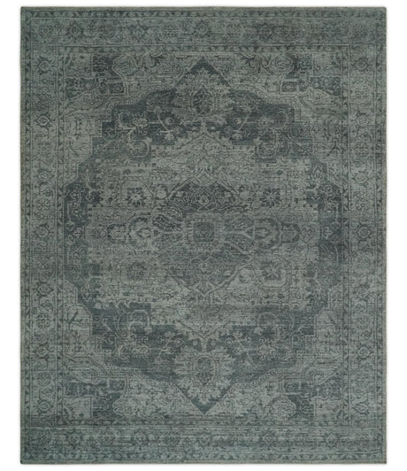 Antique Design Charcoal and Silver Traditional Medallion Custom Made wool Area Rug