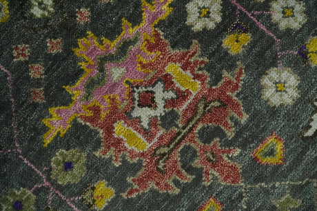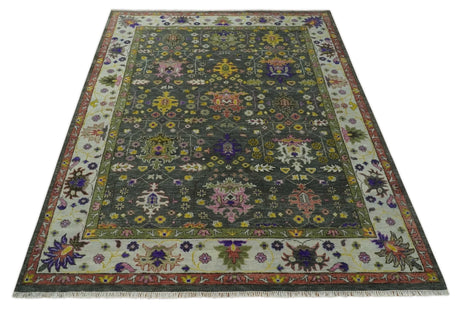 Hand Knotted Charcoal, Ivory and Green Traditional Oushak Custom Made Wool Area Rug