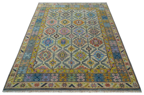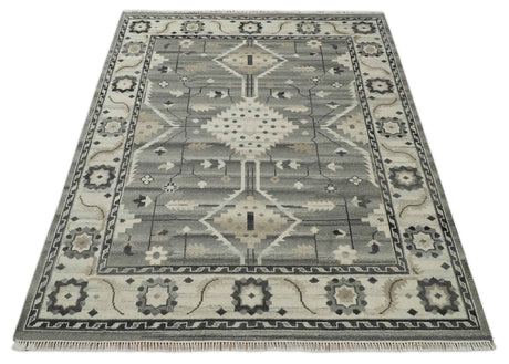 Antique Silver Hand knotted Traditional Multi Size Oushak Wool area Rug