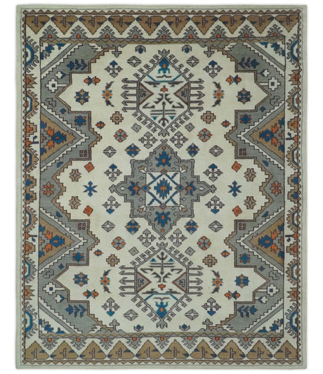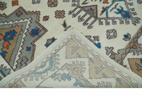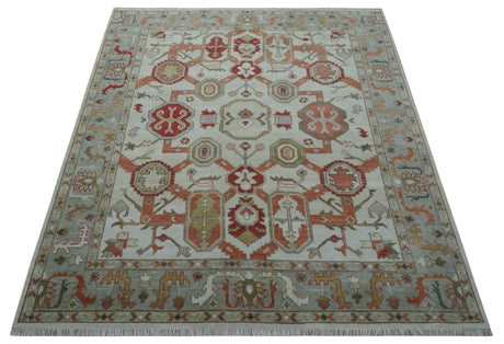 Ivory and Blue Vibrant Colorful Hand knotted Traditional Oushak Multi Size wool Area Rug