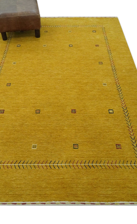 Custom Made Mustard Modern Tribal Design Wool Area Rug