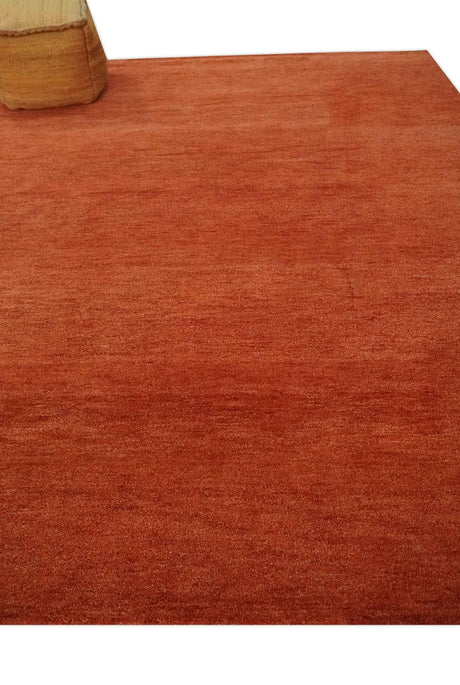 Custom Made Solid Plane Rust Woolen Hand Tufted Multi Size wool Rug