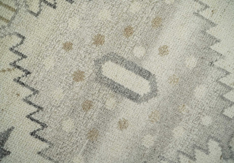Custom Made Hand Knotted Beige, Gray and Mustard Oriental Multi Size Wool Area Rug