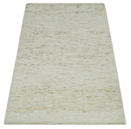 Ivory and Brown Abstract Hand Tufted Multi Size Natural Wool Area Rug