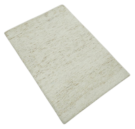 Solid Gray Hand knotted Modern look Custom Made wool Area Rug