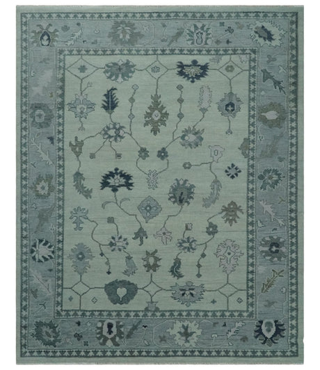 Custom Made Teal and Ivory Hand knotted Oriental Oushak Multi Size wool Area Rug