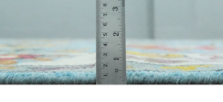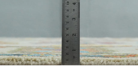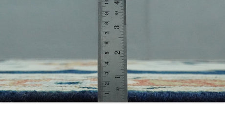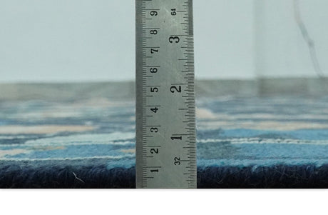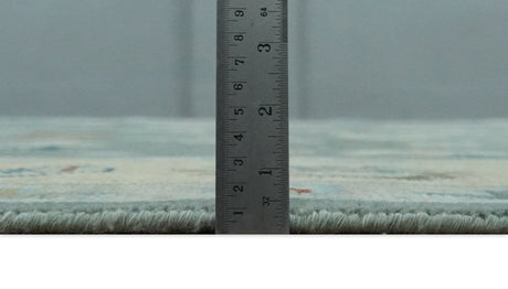 Contemporary Ivory and Blue Hand Knotted Multi Size Rug