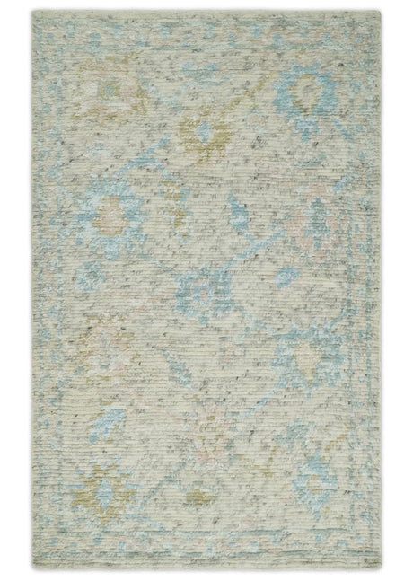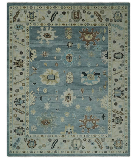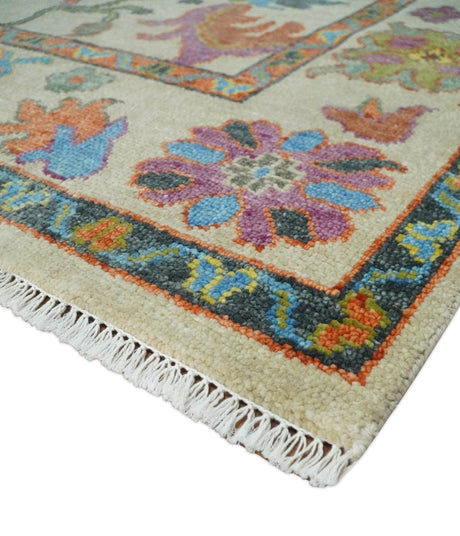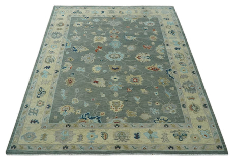 Hand Knotted Ivory, Charcoal and Blue Traditional Oriental Oushak Multi size Wool Area Rug