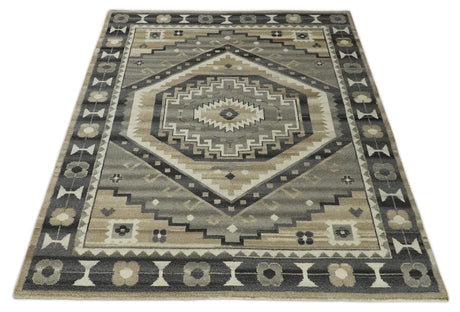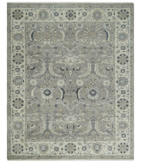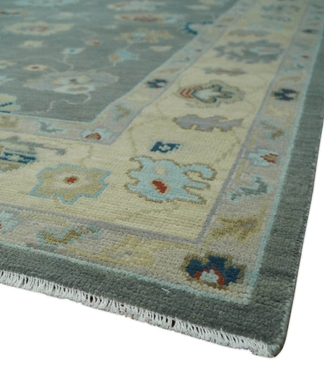 Hand knotted Gray and Beige Traditional Oushak Wool Area Rug