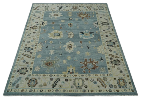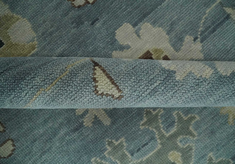 Custom Made Hand Knotted Vibrant colorful Blue and Ivory Traditional Oushak Wool Area Rug