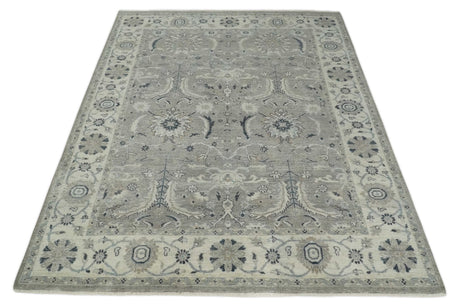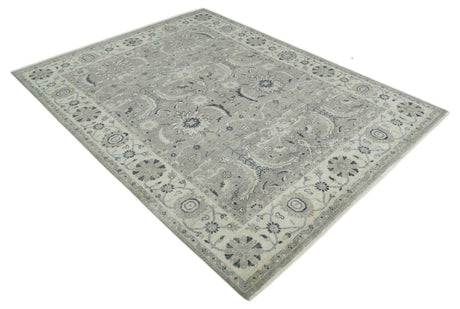 Custom Made Silver and Gray Oushak Hand Knotted Traditional Wool Rug