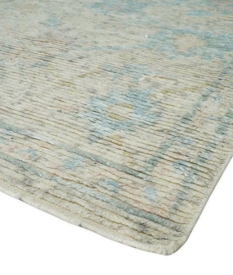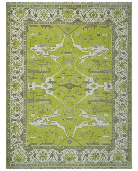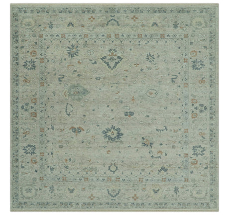 Green and Ivory Hand knotted Oriental Oushak Multi Size wool Area Rug