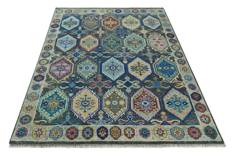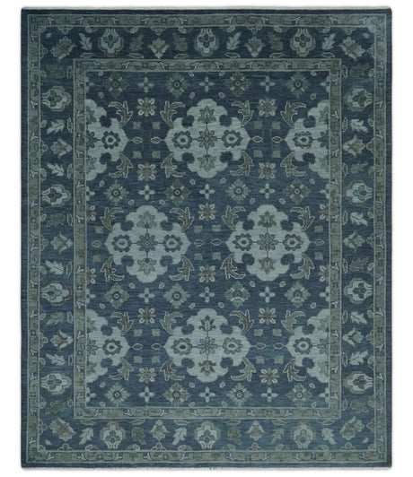 Antique look Charcoal, beige and Blue Hand knotted Traditional Oushak Custom Made wool Area Rug