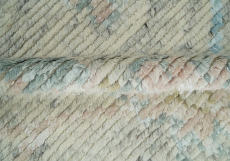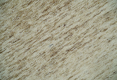 Beige and Ivory Shaded Solid Wool Hand Woven Multi Size Rug