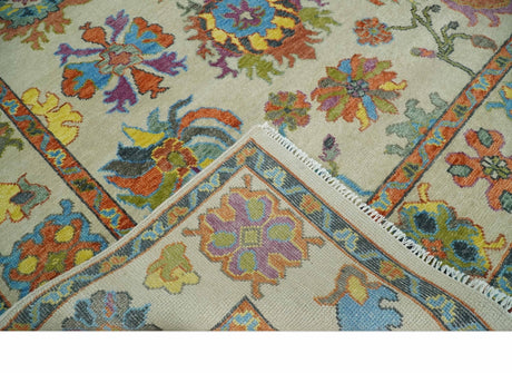 Vibrant Colorful Beige and Rust Traditional Oushak Custom Made wool Area Rug