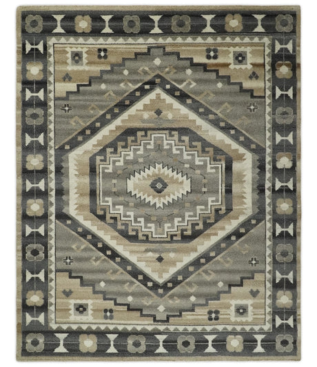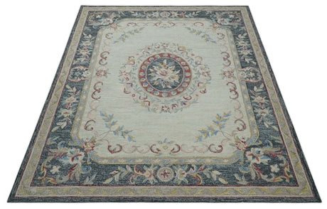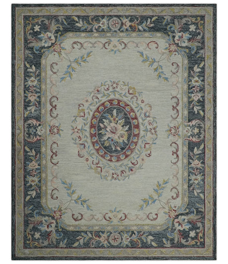 Custom Made Beige and Charcoal Aubusson French design Hand Tufted wool Area Rug