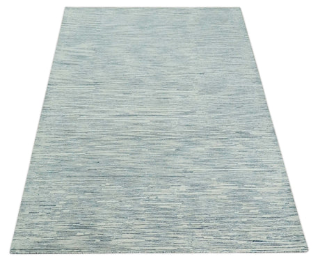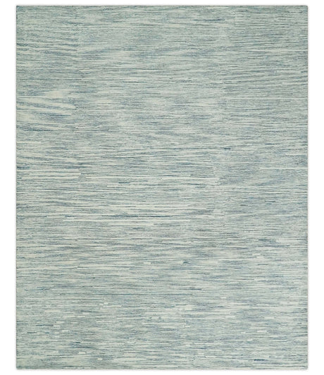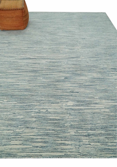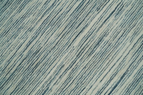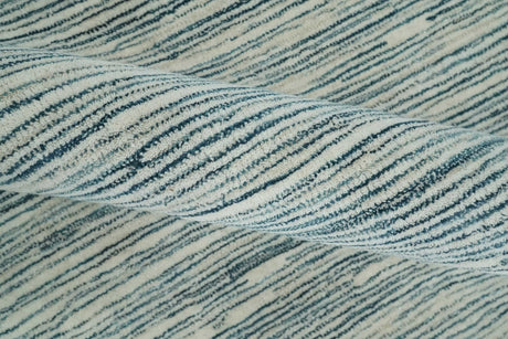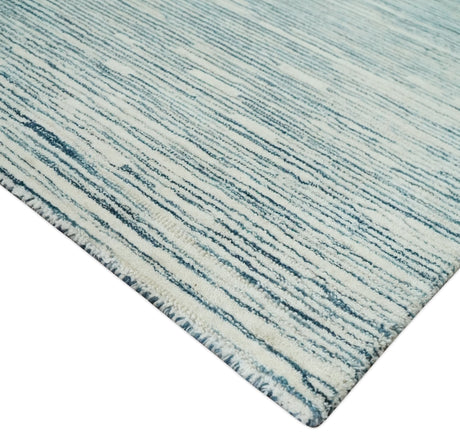 Hand Tufted Woolen Modern White and Blue Custom Made Area Rug