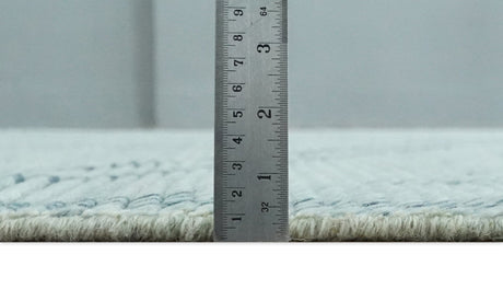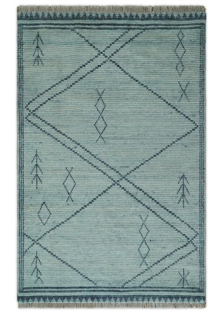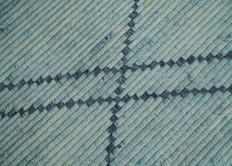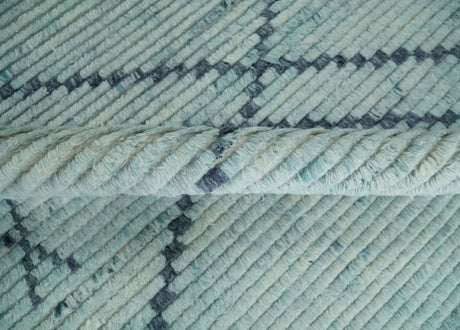 Custom Made Hand Woven Silver and Blue Abstract Trellis Moroccan Rug Made with Blended Wool