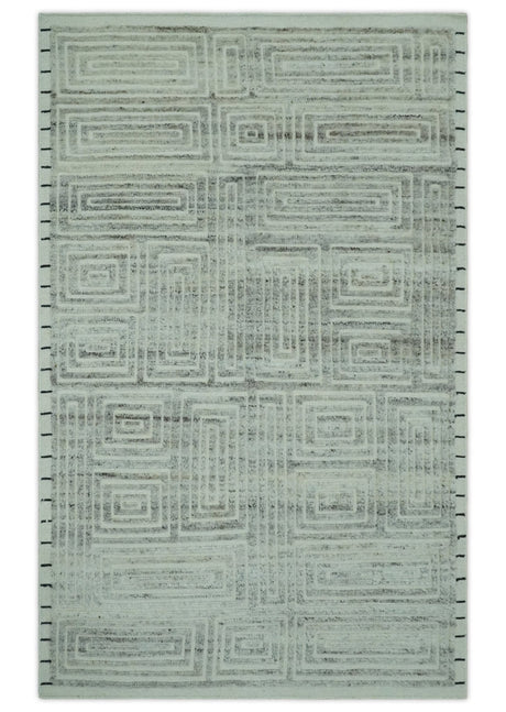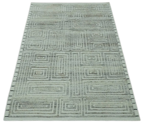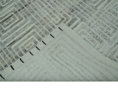 Ivory, Silver and Charcoal Modern Geometrical Puzzle Design hand knotted Custom Made wool Area Rug