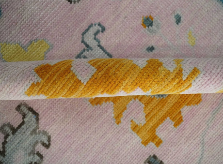 Custom Made Pink and Gray Vibrant Colorful Hand knotted Traditional Oushak wool Area Rug