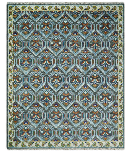 Silver, Olive and Gray Floral Herati Medallion Hand knotted Custom Made wool Area Rug