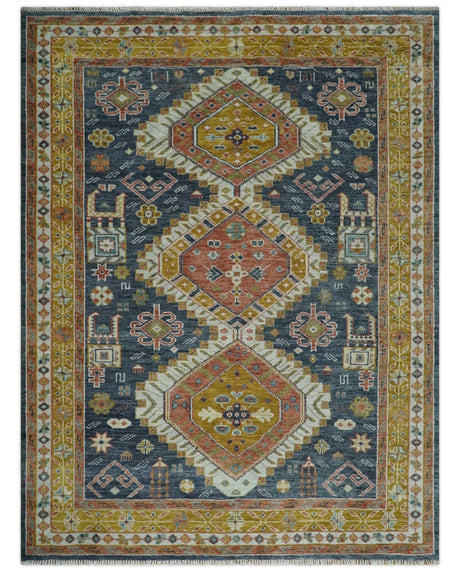 Charcoal, Blue and Ivory Traditional Hand Knotted Multi Size Wool area Rug