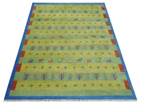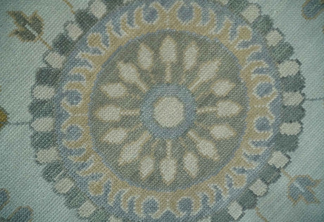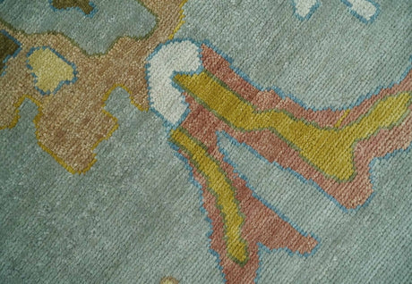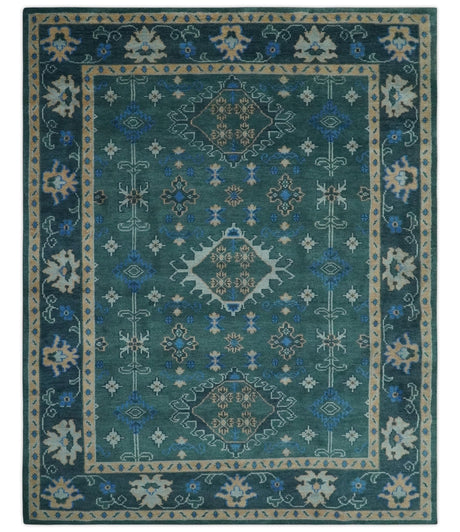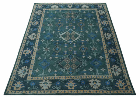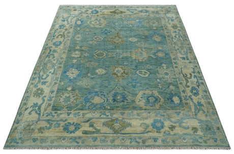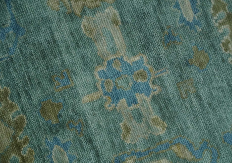 Green, Beige and Blue Hand knotted Traditional Oushak Multi Size Wool Area Rug