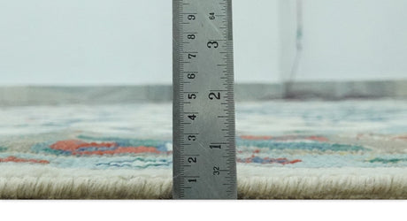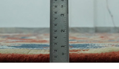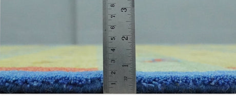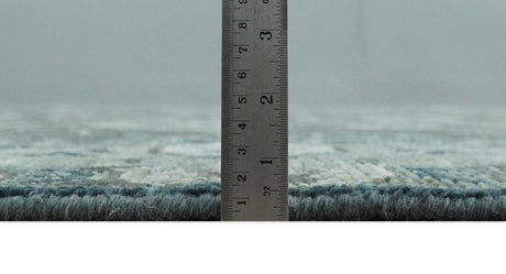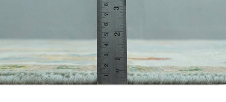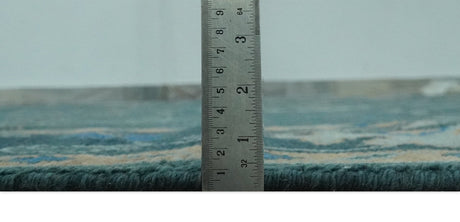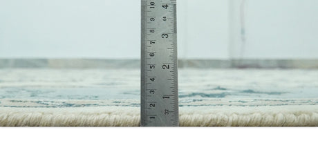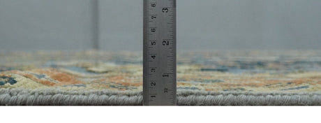 Beige, Blue and Ivory Hand Knotted Traditional Wool Area Rug