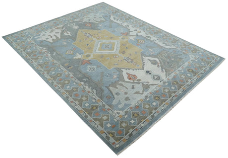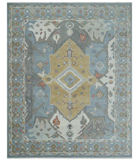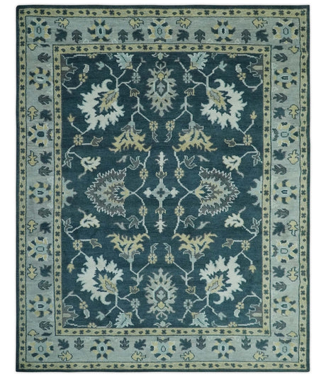 Dark Teal, Silver, Blue and Ivory Hand Knotted Traditional Oushak Multi Size Area Rug