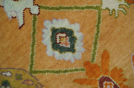 Antique Style floral Hand knotted Peach Pink and Green Custom Made Wool Area Rug