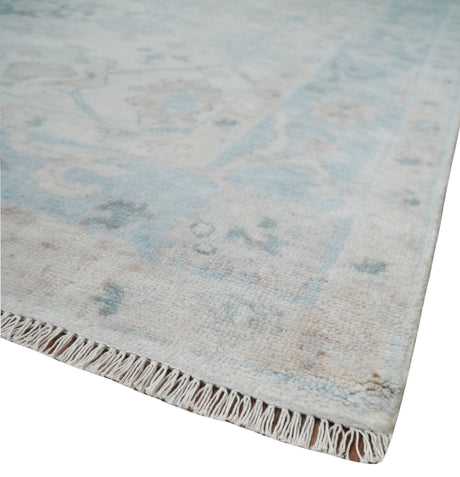 Ivory and Light Blue Traditional Oriental Hand Knotted Custom Made wool area Rug
