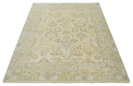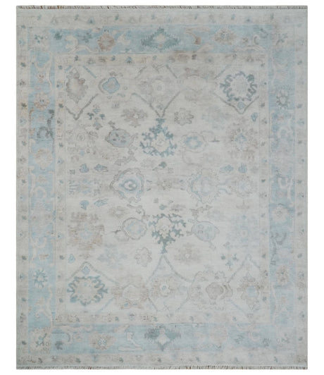 Custom Made Traditional Ivory and Silver Antique Style Oushak Hand knotted Wool Area Rug