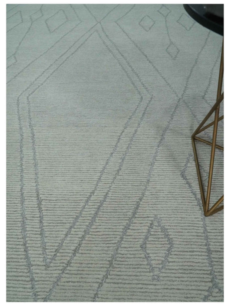 Hand Tufted Ivory Traditional Geometrical Moroccan Design Custom Made Rug