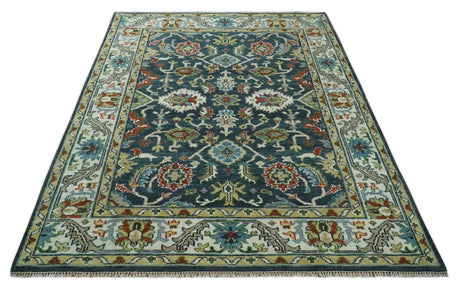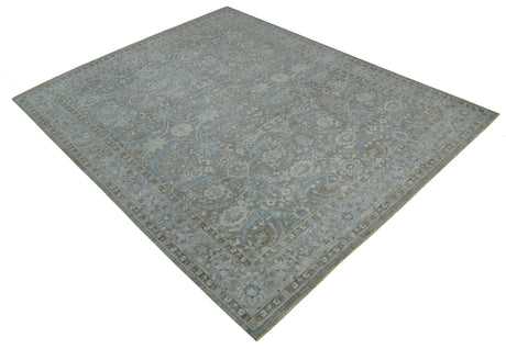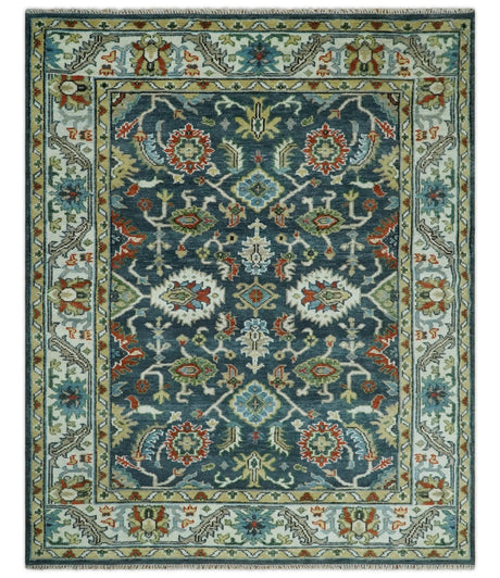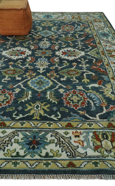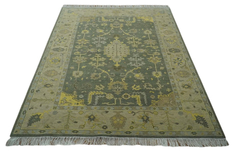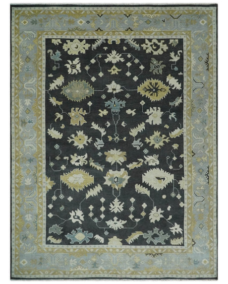 Charcoal, Olive and Mustard Hand knotted Oriental Oushak Custom Made wool Area Rug