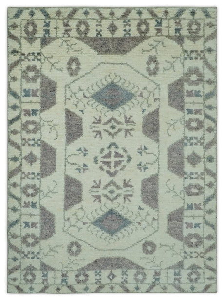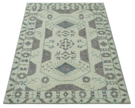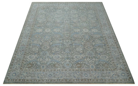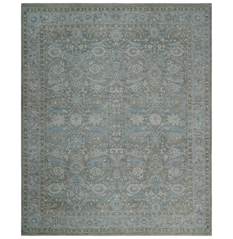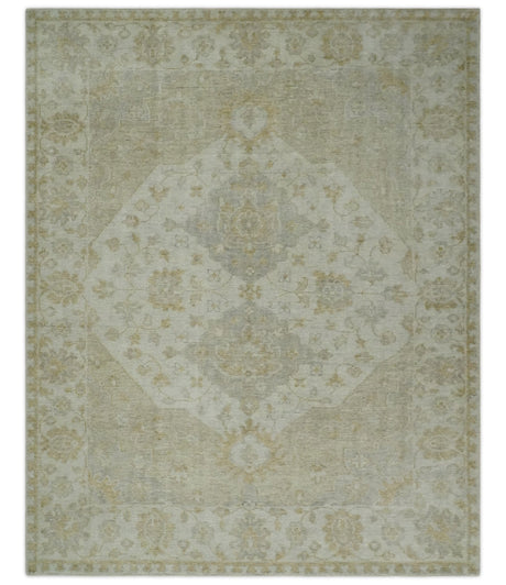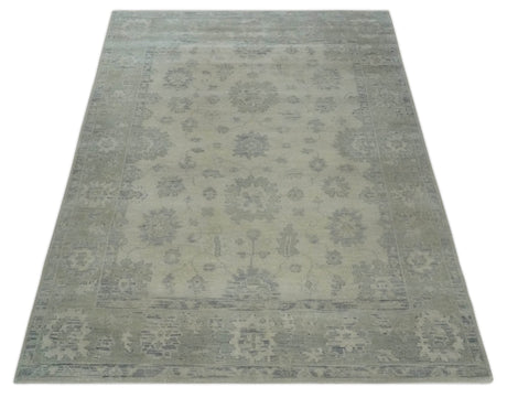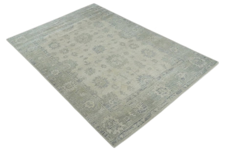 Antique look Hand Knotted Silver and Beige Traditional Oushak Wool Area Rug