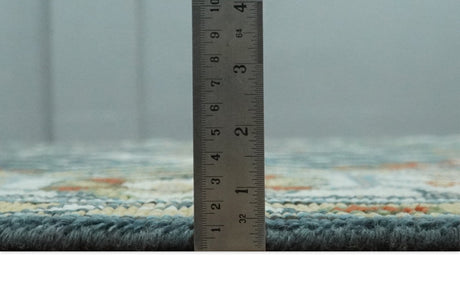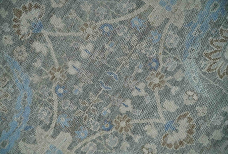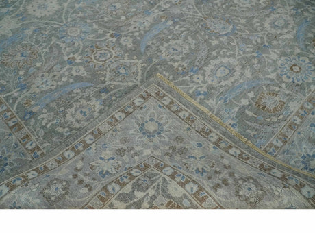 Hand Knotted Antique Ivory, Blue and Gray Traditional Vintage Style Oushak Wool Rug