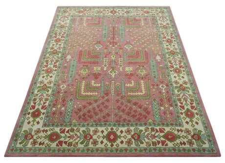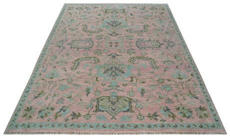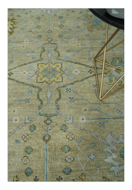 Custom Made Beige and Light Green Hand knotted Traditional Oushak Multi Size wool Area Rug