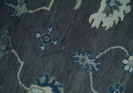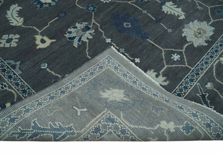 Antique Hand Knotted Oushak Charcoal and Blue Traditional Area Rug
